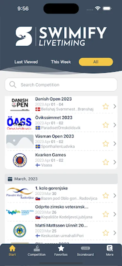 Swimify Livetiming Screenshots