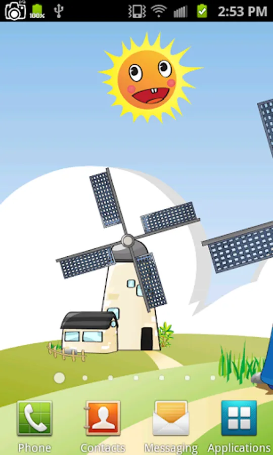 The cartoon windmill would display in your phone,And they are display in the Grassland and in your phone screen.