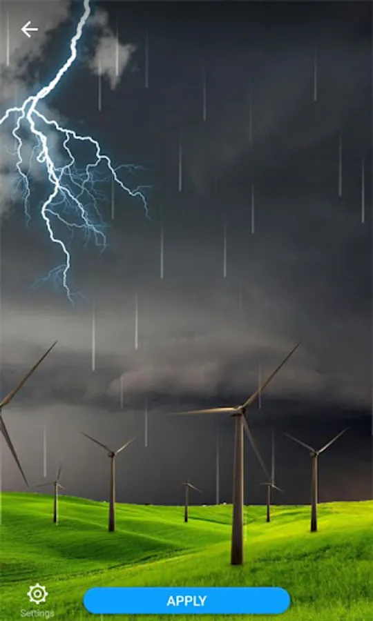 In this live wallpaper, you can enjoy the amazing windmill and thunderstorm display in your phone screen.