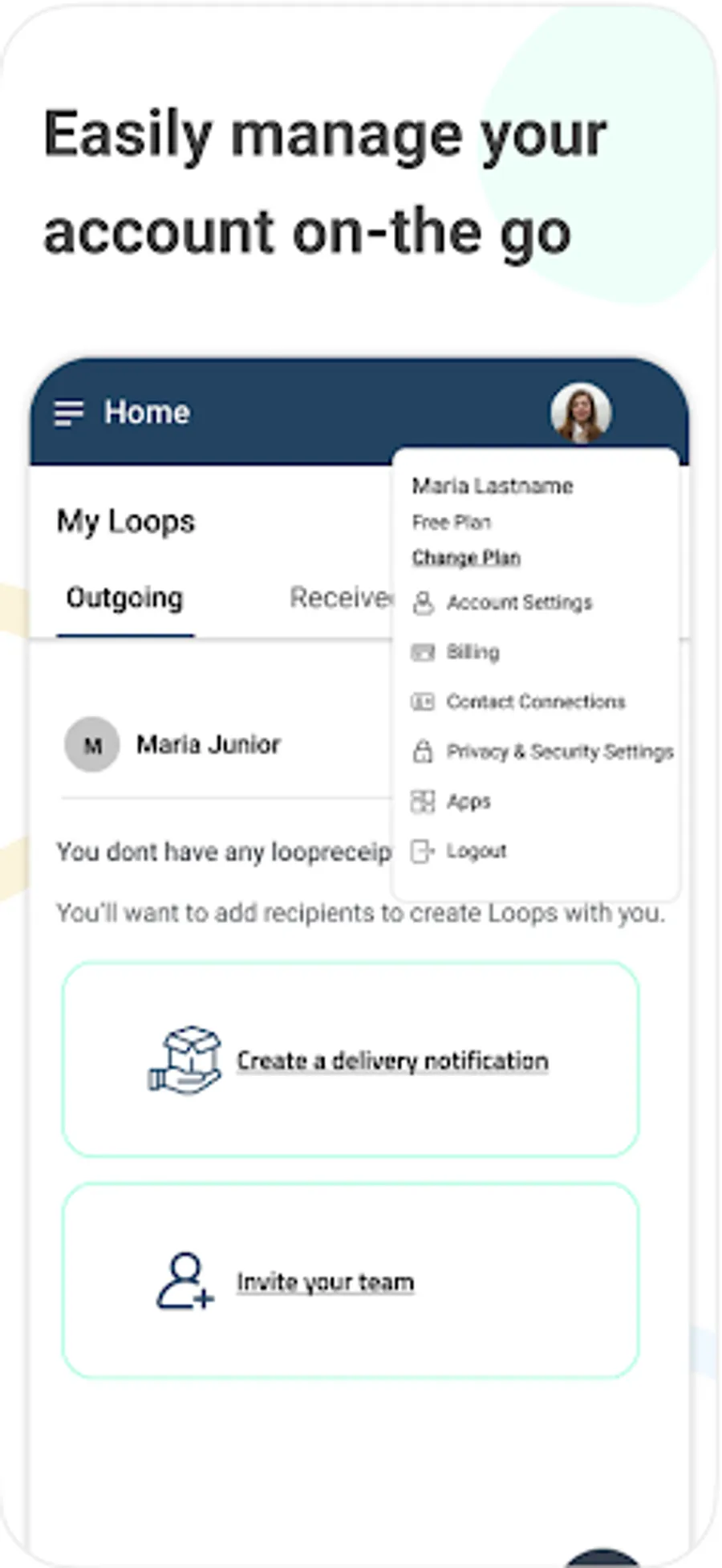 • Customize your notifications with the option to be notified for Loopreceipts, new team members, pickup reminders or unsuccessful deliveries