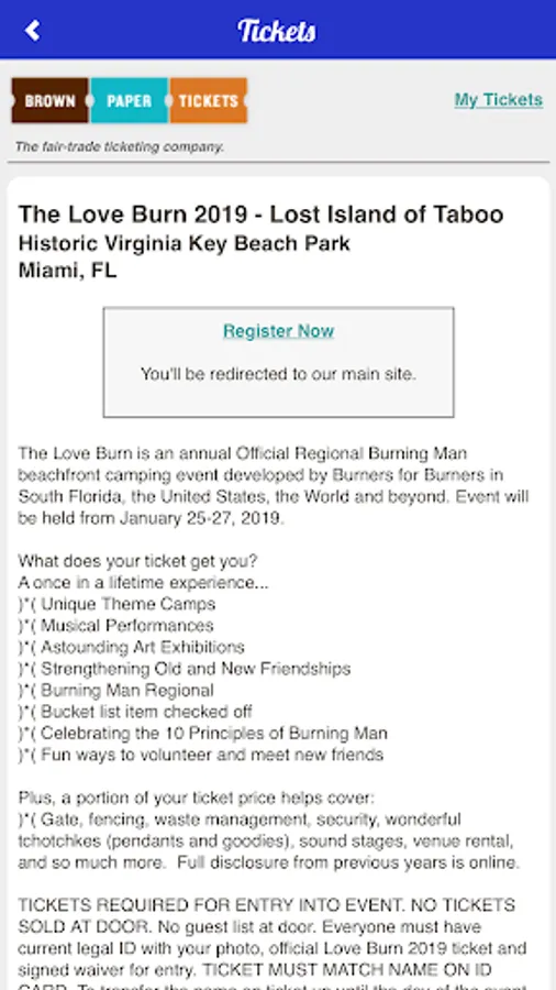 Ticket price helps covers fencing, waste management, security, wonderful tchotchkes (pendants and goodies), sound stages, venue rental, and so much more. Full disclosure from previous years is on the website - TheLoveBurn dot com.