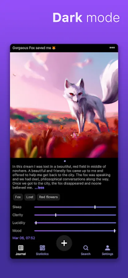 Dream storytelling like never before with the Lucid AI dream journal. Our dream app offers a unique and exciting way to bring your dreams to life through the use of our AI art generator. This standout feature creates stunning digital art pieces inspired by the themes and imagery in your dreams, making your dream world come alive like never before.