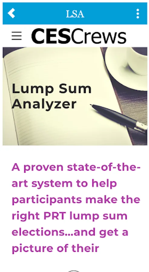 The Lump Sum Analyzer (LSA) is the proven state-of-the-art system with updated capabilities for the 2020’s. The LSA provides a retirement analysis for users who are at a critical juncture in their retirement planning: Do I take the lump sum or keep my pension, albeit in the form of an annuity?