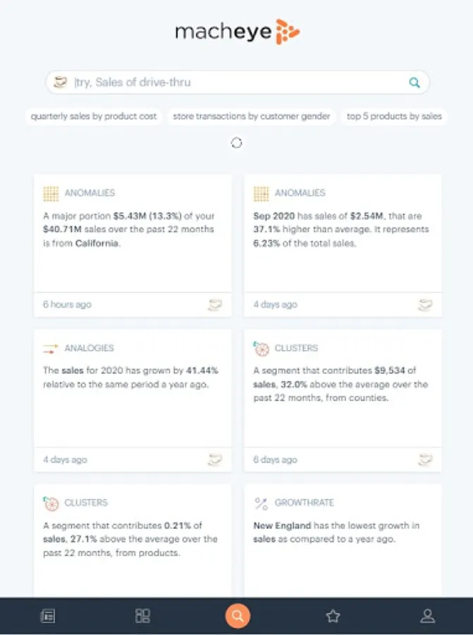 • Storytelling brings data literacy to every business user. Presenting insights as interactive audio-visuals, MachEye helps users explore and engage with data in an intuitive way.