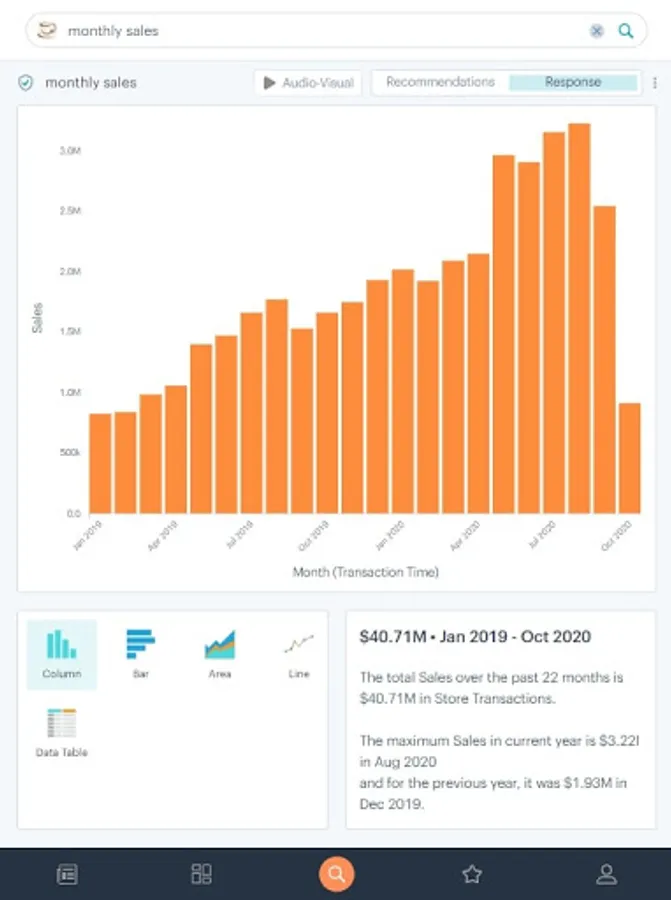 • A “Google-like” natural search functionality with search suggestions, ambiguity corrections, and search prompts on any device. The business users are empowered to interact with enterprise data in an easy & intuitive manner and receive instant results.