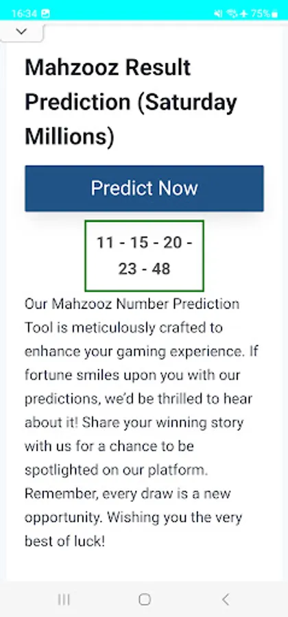 Having trouble choosing numbers? Instead of having to rely on your numbers, you can use our helpful Mahzooz prediction tool to let it choose your numbers!