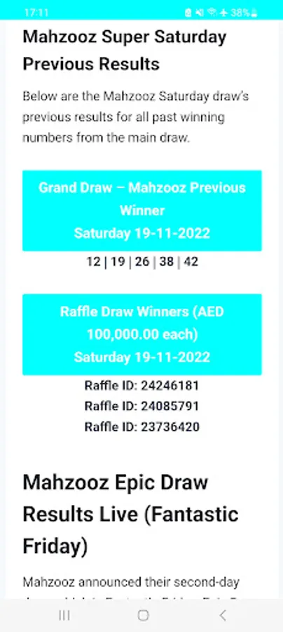 Get notified instantly when the latest Mahzooz lottery results and prize breakdowns become available, live from Dubai.