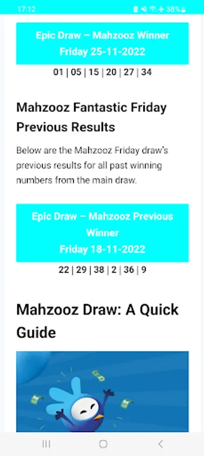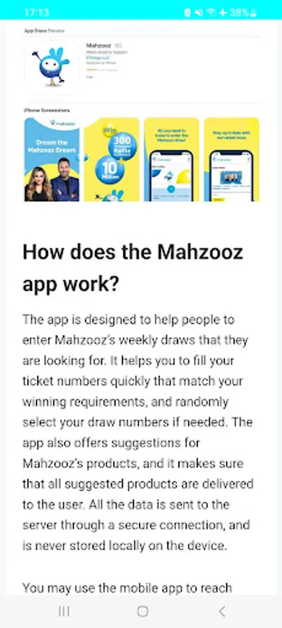 This app is intended only for informational and educational purposes. This is not an official Mahzooz app. We do not own any trademarks. All trademarks and logos belong to their respective owners. We don't sell any tickets. We try to share Mahzooz Draw results as accurately as possible. But if you are a winner, you must still check your ticket results on the official Mahzooz channels.