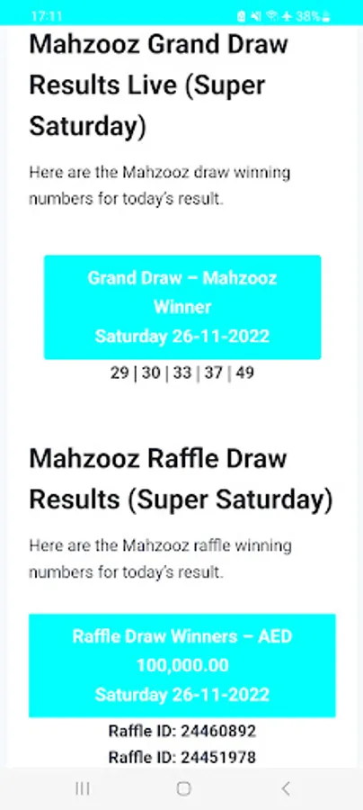 Stay updated on the latest Mahzooz Results swiftly after the draws unfold! Tailored for lottery enthusiasts in the UAE, Saudi Arabia, Oman, Qatar, Kuwait, Bahrain and beyond, this user-friendly app is available in both Arabic and English. Dive into a world of information with winning numbers, comprehensive prize breakdowns, historical results, and insider tips on mastering Mahzooz in the Gulf region. Whether you're a seasoned player or just starting, this is your essential guide to striking gold with Mahzooz draw. Here are the main features of the app: