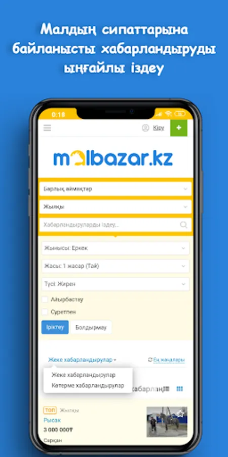 The application of the site Malbazar.kz (Malbazar) allows you to sell or buy livestock and agricultural products from ordinary people without intermediaries. Our services are used every day by thousands of people from all over Kazakhstan.
