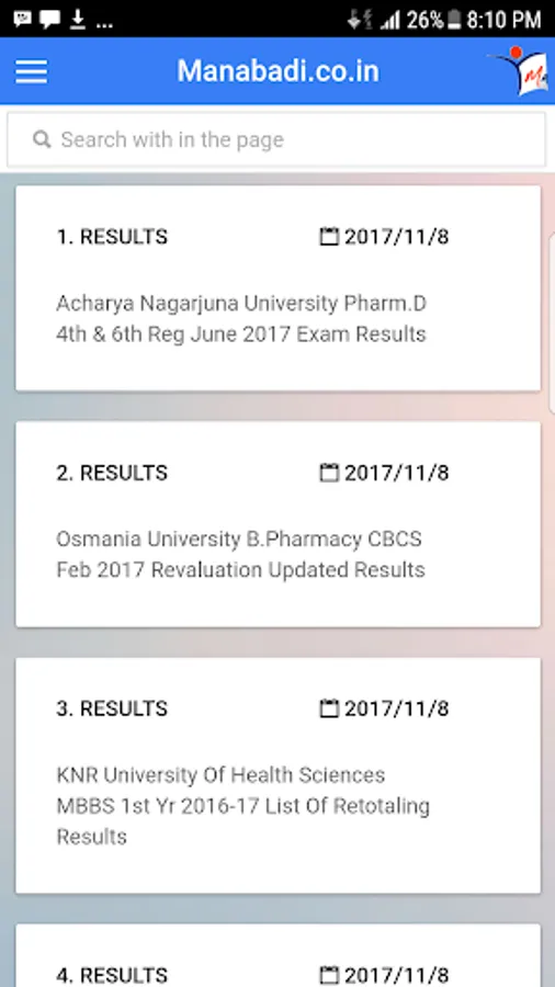 Manabadi official App is from the leading educational website www.manabadi.co.in. The information we provided is from the website manabadi.co.in. Manabadi is the name for education. This app provides fast access to view the Latest Results, Notifications, timetables and many other happenings in educational domain.