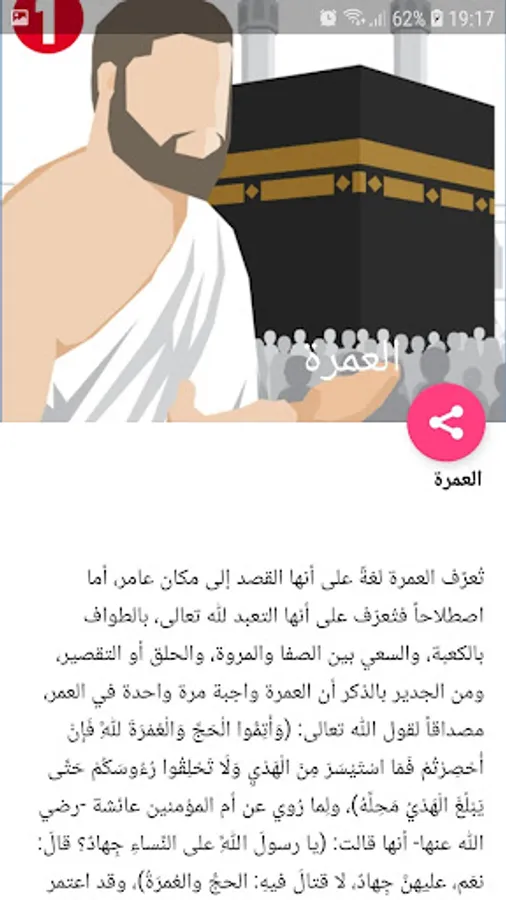 The application includes how to perform Umrah rituals: