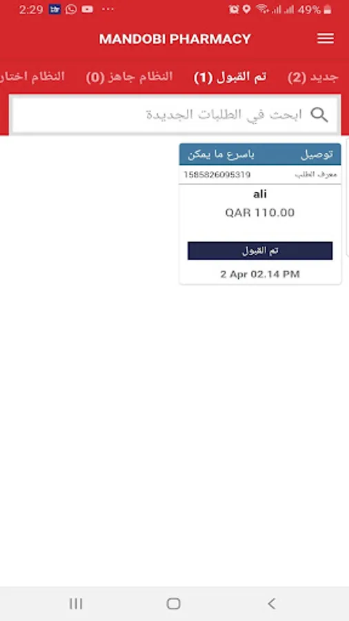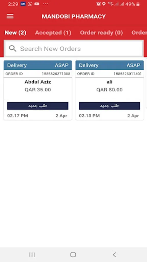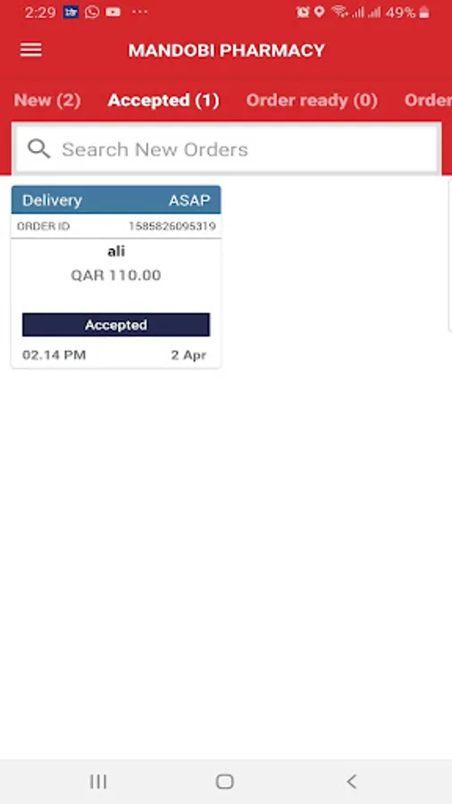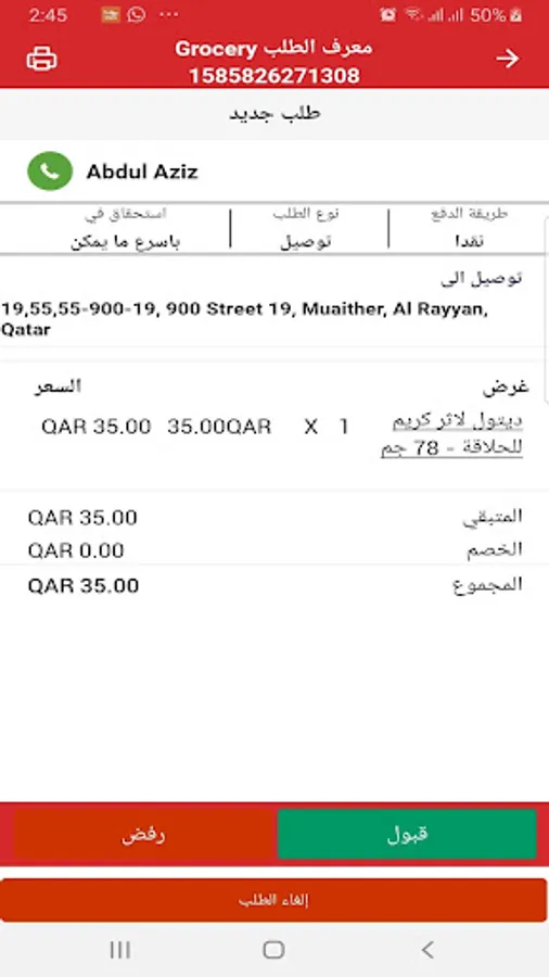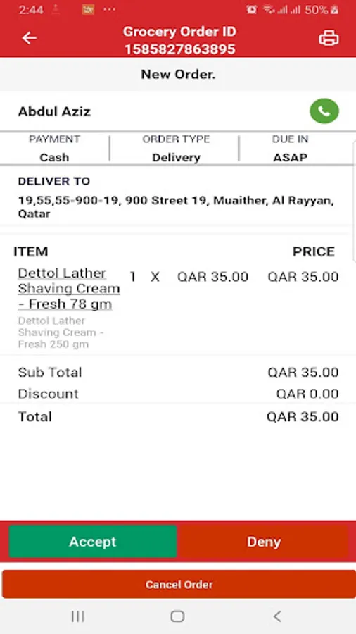 - Accept or Reject an order.