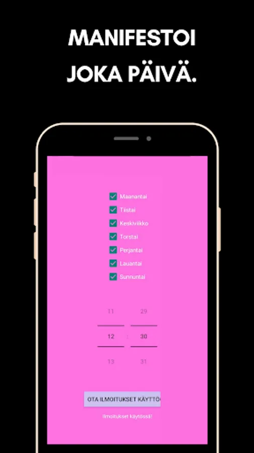 This app is a wonderful way to start your day focused and motivated. You can adjust the timing of your notification at any time to best fit your daily routine. Choose the time you like and let the application remind you of your daily manifestation time.