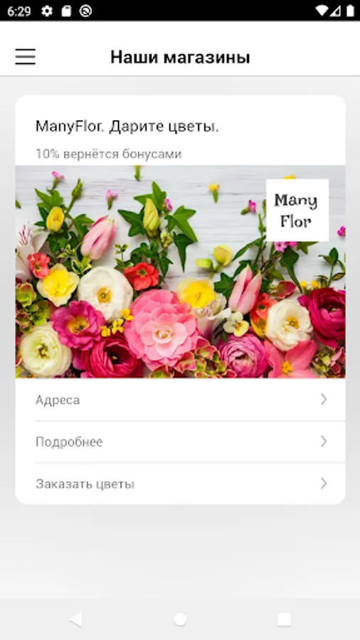 The application was implemented for clients of the Many Flor flower salon network in Balashikha.
