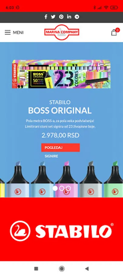 “MARINA COMPANY” d.o.o. is a family company that has represented the German company STABILO International GmbH since 1996 and is its exclusive distributor in Serbia, Montenegro, Macedonia, Bosnia and Herzegovina and Albania.