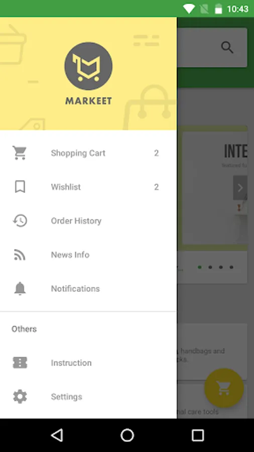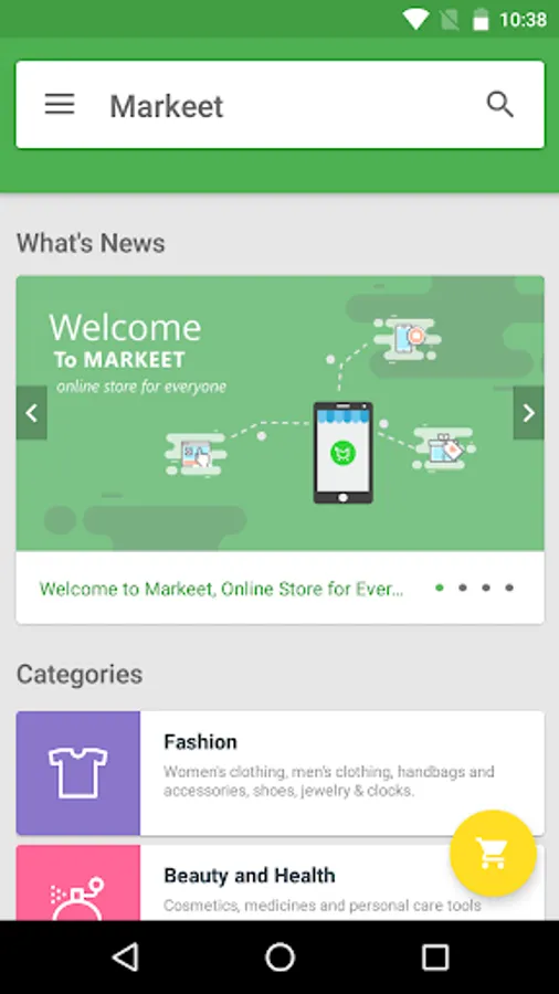 Markeet is android Online Store template, this template is solution to run your online store, promotion and selling product through android application. Implement simple menu and navigation give your customers an amazing shopping experience. You can manage your product, category, news info, send notif and many more.
