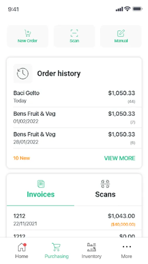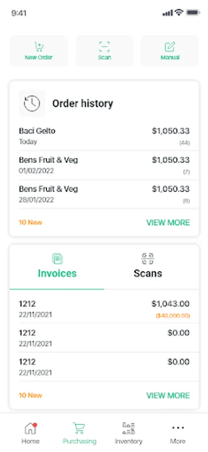 - Keep track of every supply ordering and spending in your business.