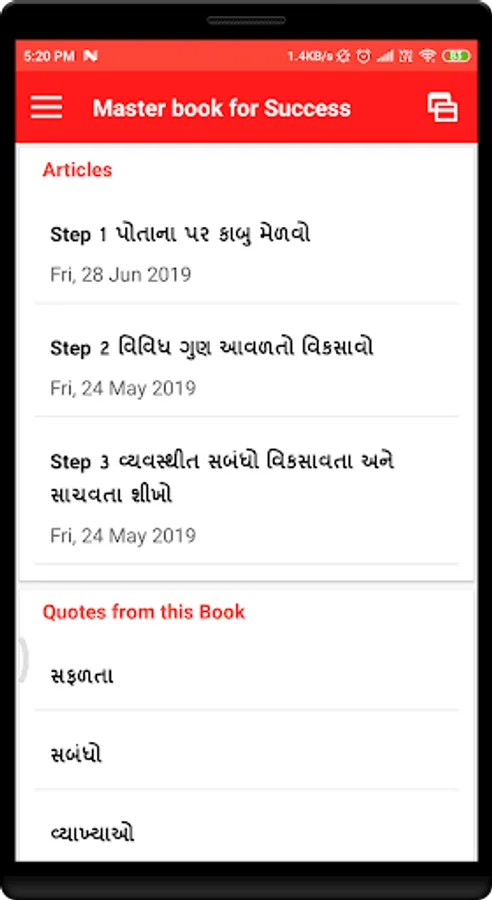 Master Book For Success Application is a Free content rating for Everyone. Master Book For Success Application is an All-in-One Book App, which provides interesting articles, motivational quotes, practical tips, quotations to read, download and share, Gujarati suvichar, Gujarati quotes, Gujarati vato, Gujarati quote, safalta, self-assessment questions and useful quotes available to help you succeed. This book is a complete personality development program that teaches how to get success, how to develop relationships, and evaluate your best quality evaluation. In a book you can self-assess by answering questions related to self evaluation, and get the most valuable data. After studying this book filled with