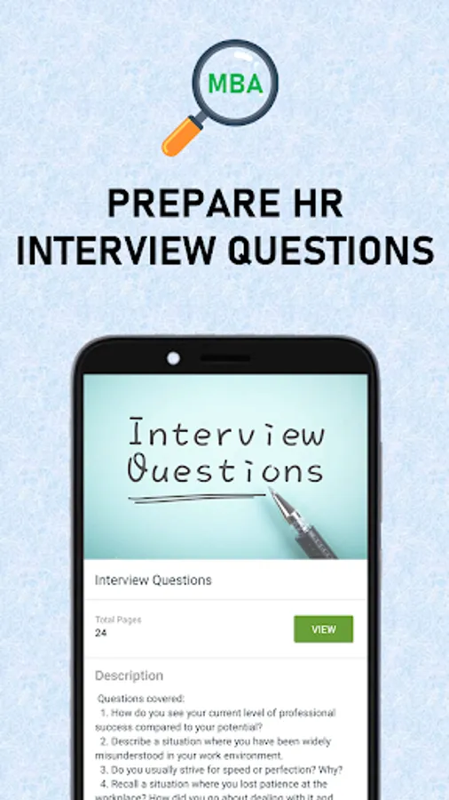 If you need help with your MBA interview preparation and you are looking for mba marketing management apps or app with mba finance interview questions then this is the right mba preparation app for you. This app is the perfect MBA exam guide of all the subjects. You can use it for your MBA interview preparation, MBA finance study, MBA marketing, MBA assignment, online course, test prep and much more. Enjoy nice collection of short and crisp MBA notes, lessons, case study, assignments and interview questions. Finally, HR interview questions are important part of any interview process. We have collected top 50 HR interview questions and answers in this app for your reference.