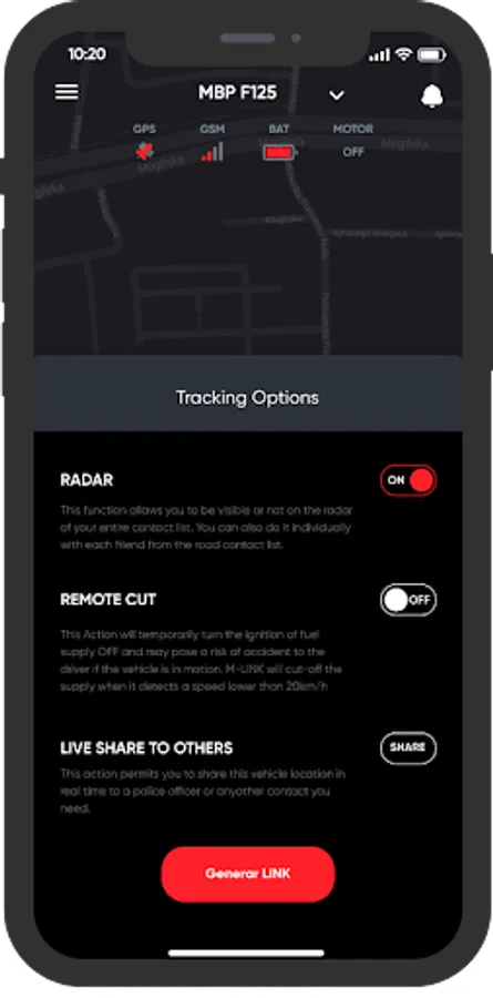 - You can add other M-LINK users as your "Road Friends" and Share your visibility on Radar.
