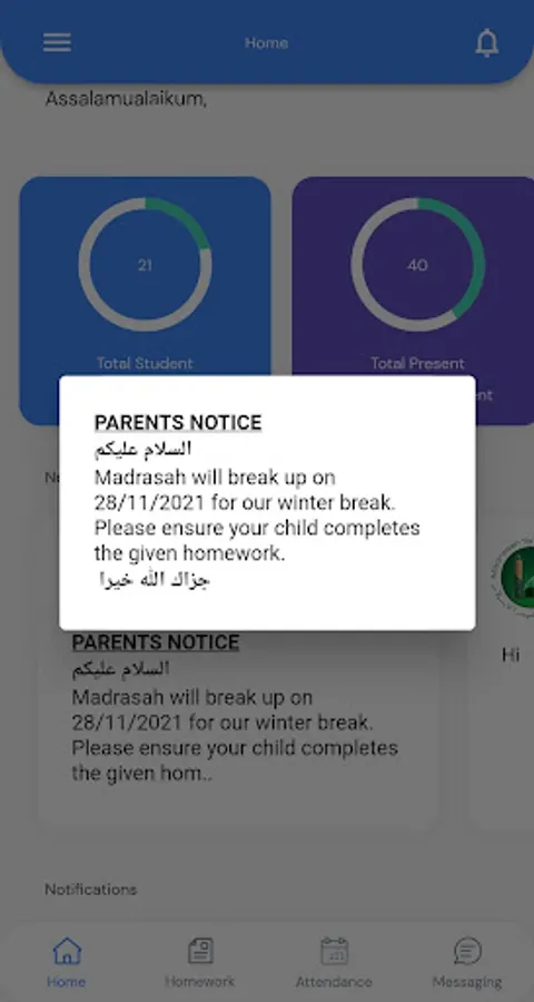 Madrasah Connect is a safe, and simple communication app for Parents and Teachers.