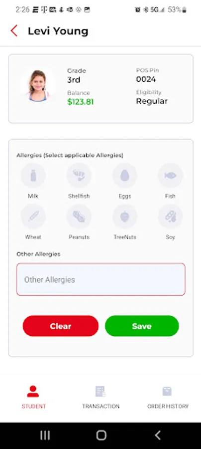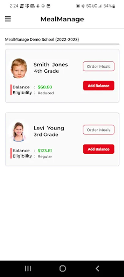 Simplified login to access parent dashboard to view and manage kids profile, view active menus, pre-orders meals, make online payment for meals ordering, fund meal accounts online, secure payments for meal orders. Manage student allergies. View Transaction history and meal orders details.