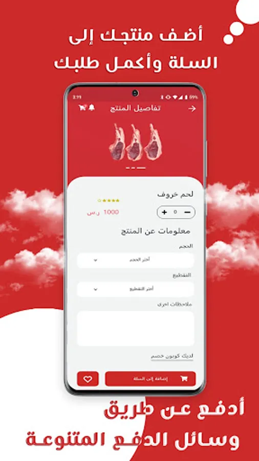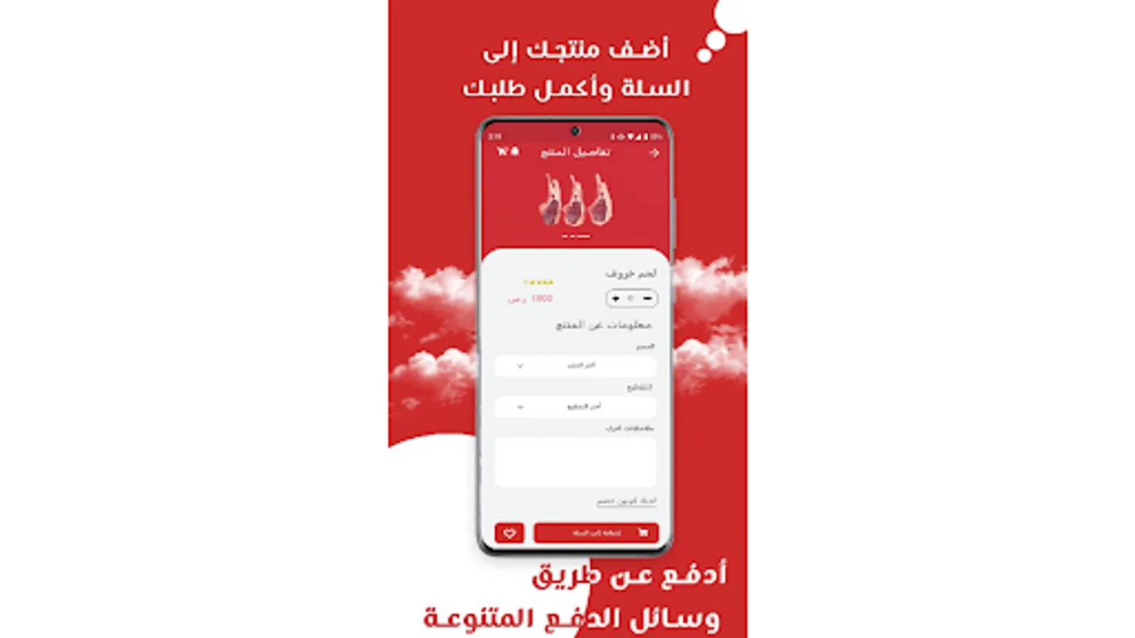 We have provided you with the application of the sacrifices to choose the lamb size and weight you want and the way of cutting and cooking if you want and connects to the door of the house.