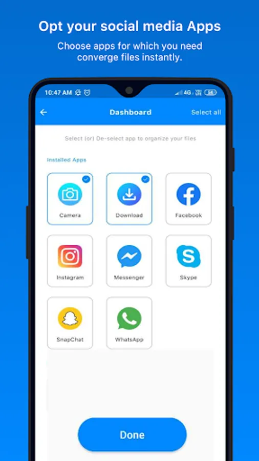 Our app comes with a range of features to help you optimize your phone's storage. You can easily manage and delete all your documents, photos, and videos from all apps in one place. Plus, you can also clear app cache and junk files with just a few taps.