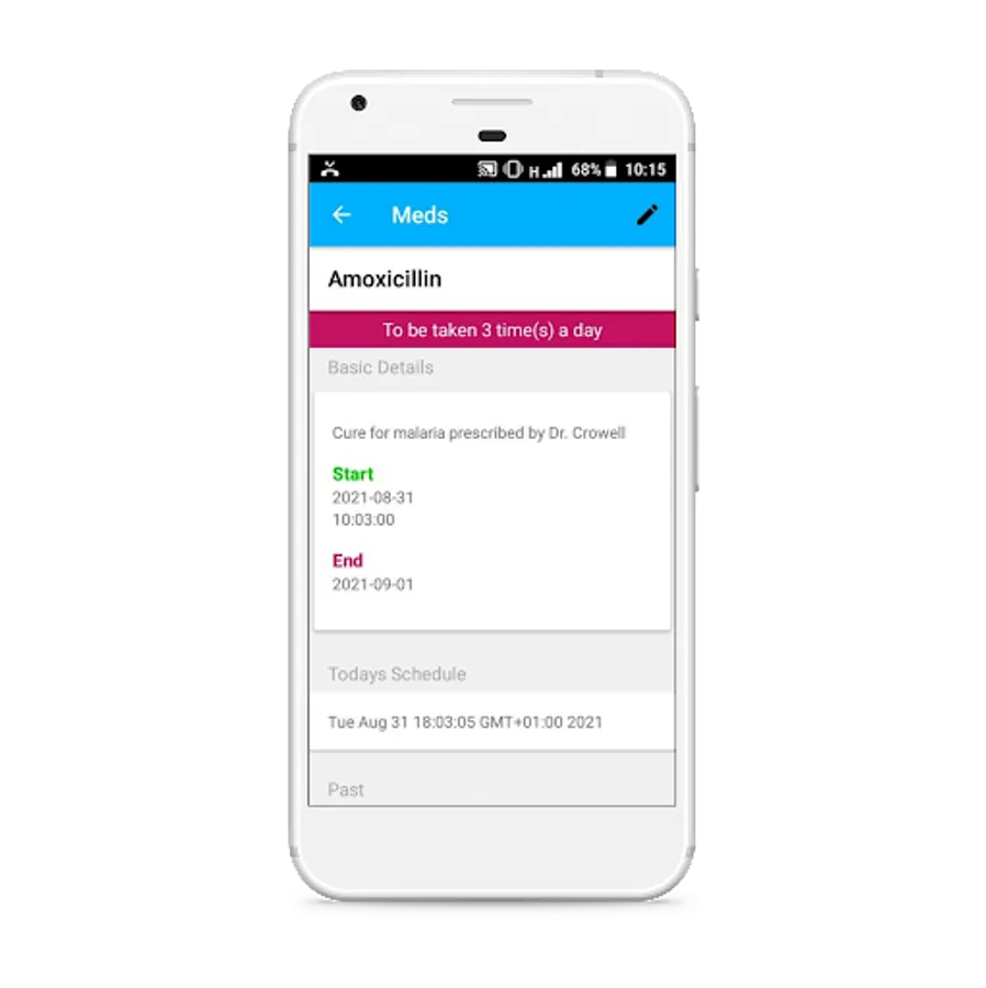 Meds is an app that helps patients remember to take their medications. It also provides tracking for the intake of the prescribed medication intake.