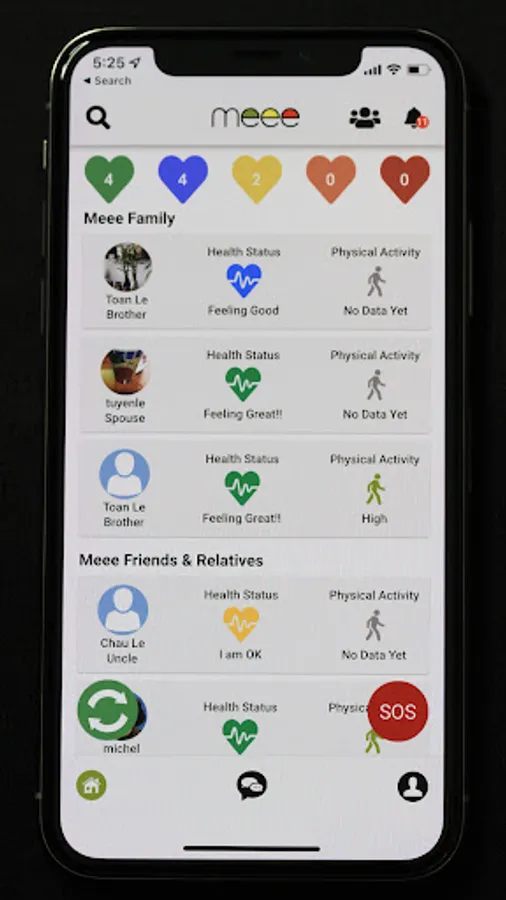Meee connects family members and those we care about so that each one of us will know how the others are feeling. The ability to have a general idea of how our loved ones are feeling/doing by glancing at the phone gives us instant peace of mind or springs us into action to get in touch with those who are not feeling/doing well. Meee integrates with the Health App to retrieve and display your daily steps count data and share it with your friends and family as an indicator of your overall physical activity and wellbeing.