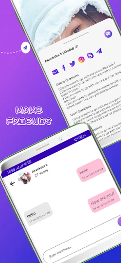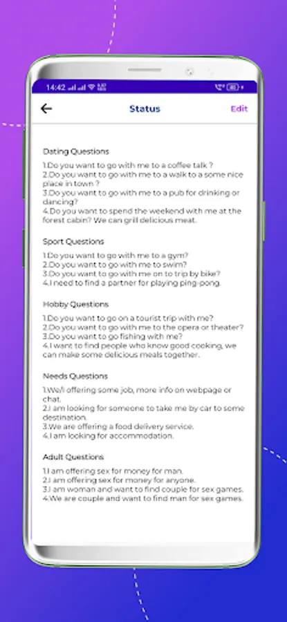 Do you want to meet new people with similar interests as you, or you need some service ? Then you are in the right place. It's very simple, you don't have to search lengthy sites and wait for an answer, from people who are very far from you, you just need to install our application, fill out a profile, set the desired statuses, set distance and you can start. You will see other people with map view.