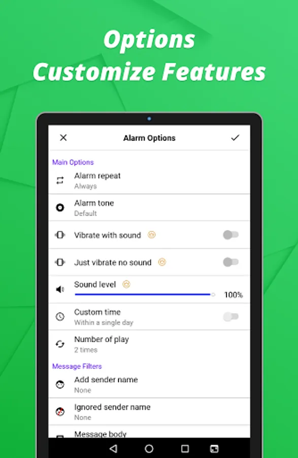 Enter 🗨️Message Alarm📢, the custom notification alarm app that will help you to never miss a notification alert. Our message reminder app is designed to notify you not only with vital messages but also with custom SMS alerts and notification sounds.