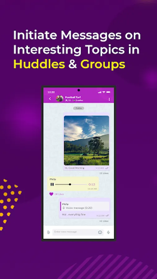 Create your own Huddle in the Category you like and let your friends join. Make a safe and secure space for your friends to share their opinions on the things they like to share. Experience the joy and fun of sharing moments with your dearest friends with Flashat Huddles and Groups.