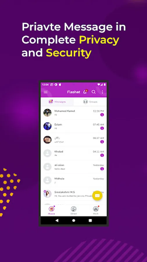 PRIVATE: Start group messaging with your friends and relatives in the Flashat Huddles. In the Private Tab, send and receive private messages along with sharing images in complete privacy and security. And view all your message requests and restricted messages in one single place under Pending.