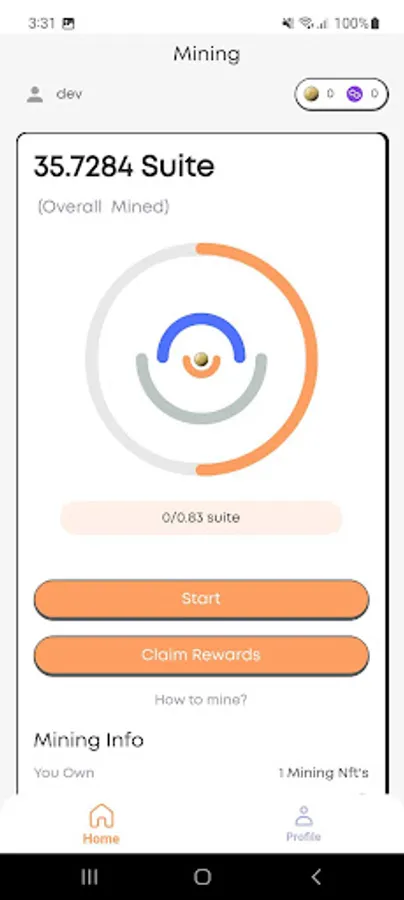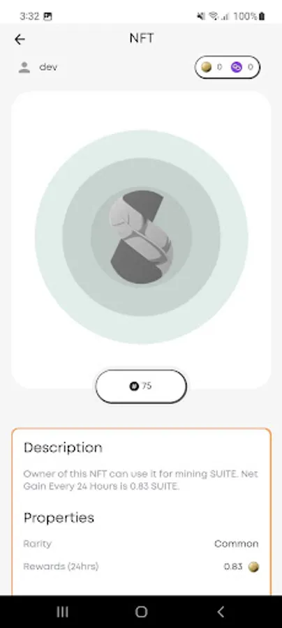 Metasuite City is a Web3 app on the blockchain with earning and game elements. Users equip themselves with NFTs in the form of cloud mining hardware. By mining in the app, users will earn SUITE token on daily basis for unlimited time on polygon network. Users can choose to buy or sell their NFTs on the in-app Marketplace. Users’ SUITE earnings are stored in the in-app wallet which can be sent to external wallet at any time for trading on decentralized exchanges. Users should make sure to have Matic in their wallets to act as gas fees for trading NFTs, and for sending SUITE to external wallet.