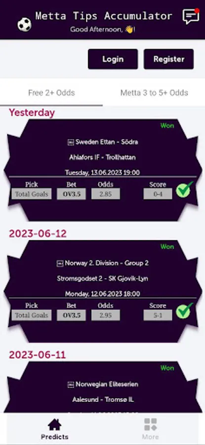 With Metta Tips, you no longer need to spend hours researching or relying on unreliable sources for your betting decisions. Our experts do the hard work for you, analyzing the data and trends to identify the most promising opportunities. You'll receive Free daily predictions straight in our App, conveniently allowing you to stay up-to-date with the latest insights.