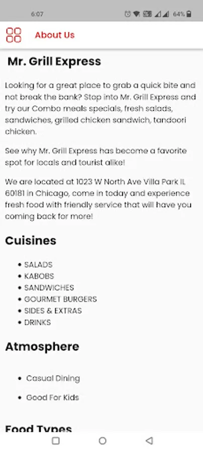 Looking for a great place to grab a quick bite and not break the bank? Stop into Mr. Grill Express and try our Combo meals specials, fresh salads, sandwiches, grilled chicken sandwich, tandoori chicken. See why Mr. Grill Express has become a favorite spot for locals and tourists alike! We are located at 1023 W North Ave Villa Park IL 60181 in Chicago, come in today and experience fresh food with friendly service that will have you coming back for more!