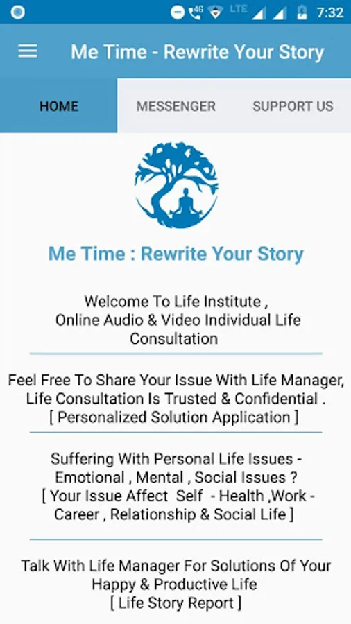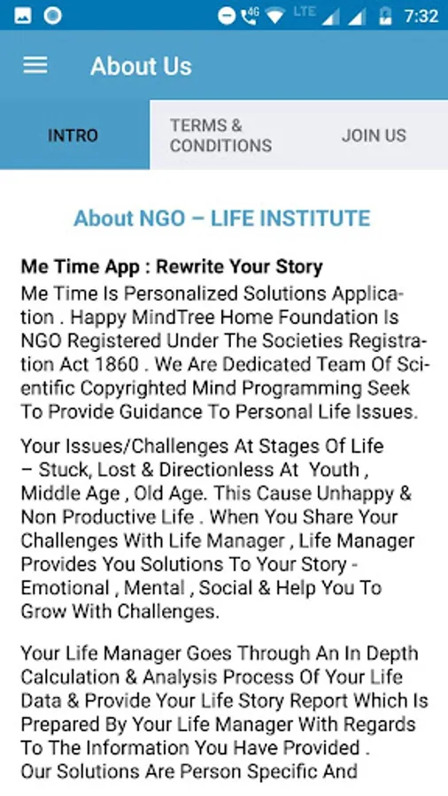 Me Time Is Personalized Solutions Application . Happy MindTree Home Foundation Is NGO Registered Under The Societies Registration Act 1860 . We Are Dedicated Team Of Scientific Copyrighted Mind Programming Seek To Provide Guidance To Personal Life Issues.Your Issues/Challenges At Stages Of Life – Stuck, Lost & Directionless At Youth , Middle Age , Old Age. This Cause Unhappy & Non Productive Life . When You Share Your Challenges With Life Manager , Life Manager Provides You Solutions To Your Story - Emotional , Mental , Social & Help You To Grow With Challenges.