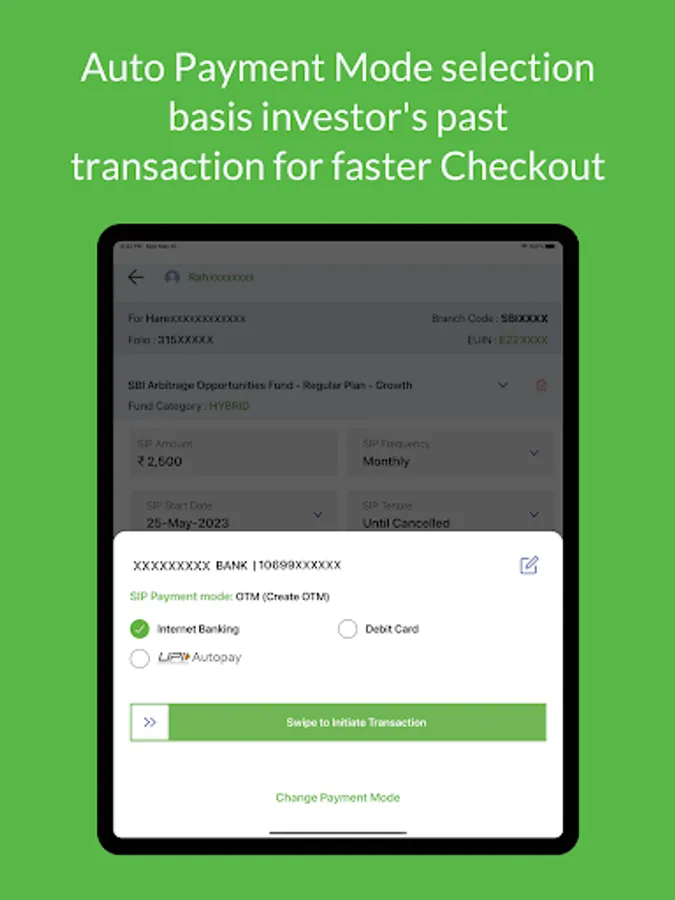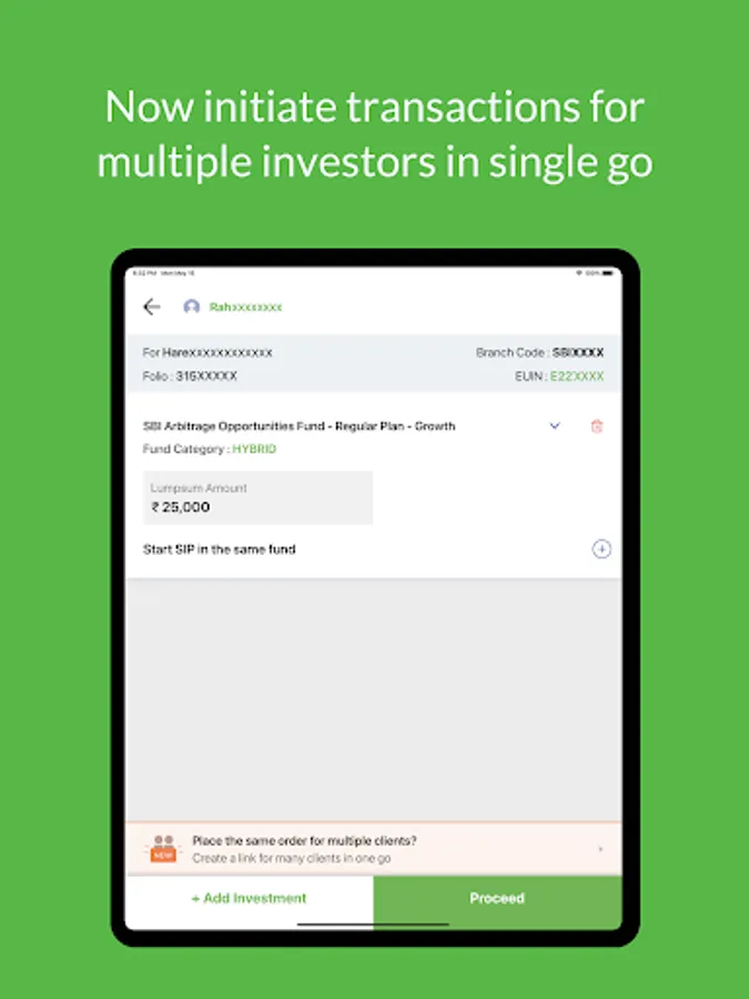 - Search for customers who have invested in SBI mutual fund schemes, get latest NAV, current value of investments etc.