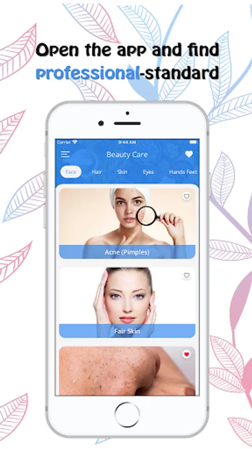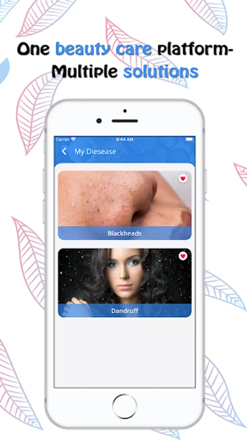 Personalization- Your skin, face, hair or eyes do not have all issues listed in the app. That is why you can select only those problems, which are relevant to you. There is a heart-shaped icon adjacent to the name of every disorder. You can click on that icon and find the chosen ones from the My Disease tab.