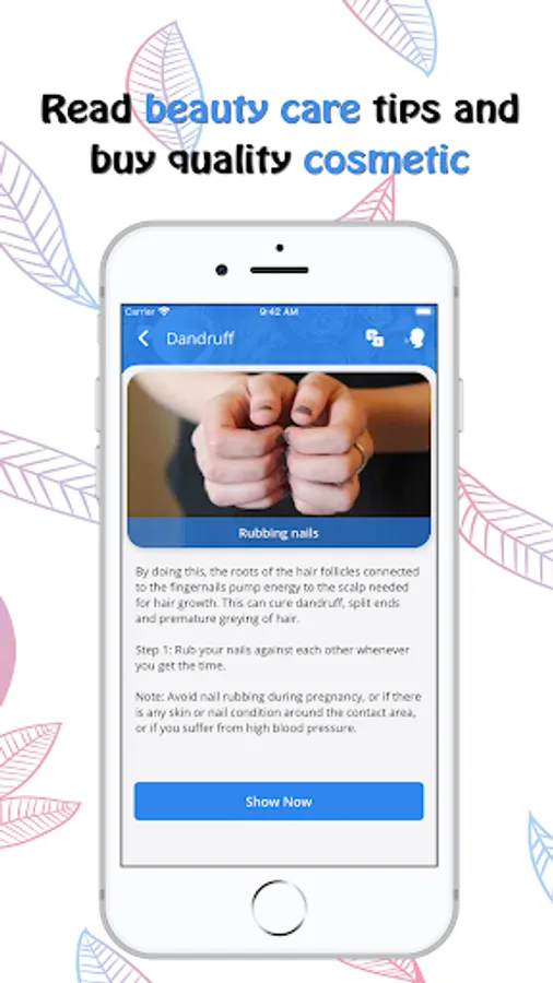 Easily navigable interface- On the app interface, you can find different tabs- Face, hair, skin, eyes, and hands/feet. Thus, whether you need skincare tips or hair care solutions, you can hit the right tab. When you have clicked on the Face tab, you can find a list of some common facial issues, including acne, blackheads, and teeth whitening. Similarly, on the Hair tab, there are names of various complications, including grey hair, split ends, and dandruff. Hands/feet section includes dry or rough hands, nail growth, pinky shiny nails, and lots of other topics. As all users have different problems, they will get treatment solutions based on their needs.