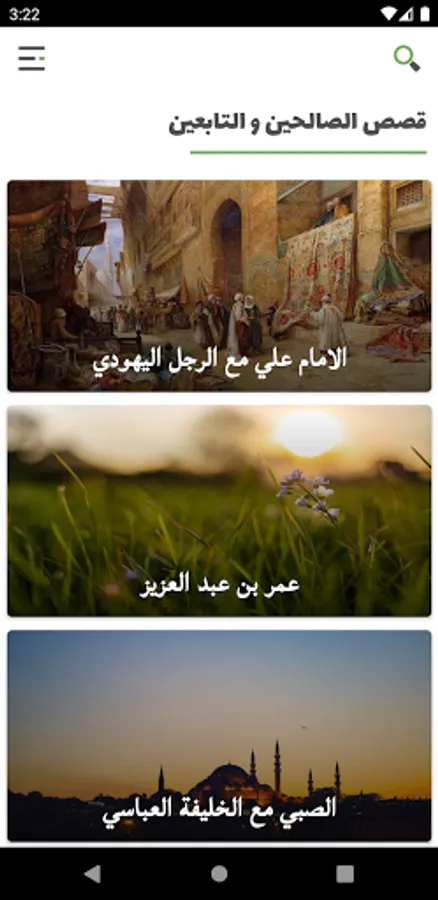 The "righteous stories" application is designed in a simple and coordinated manner that is easy to deal with, while it contains various features that can be summarized as follows: