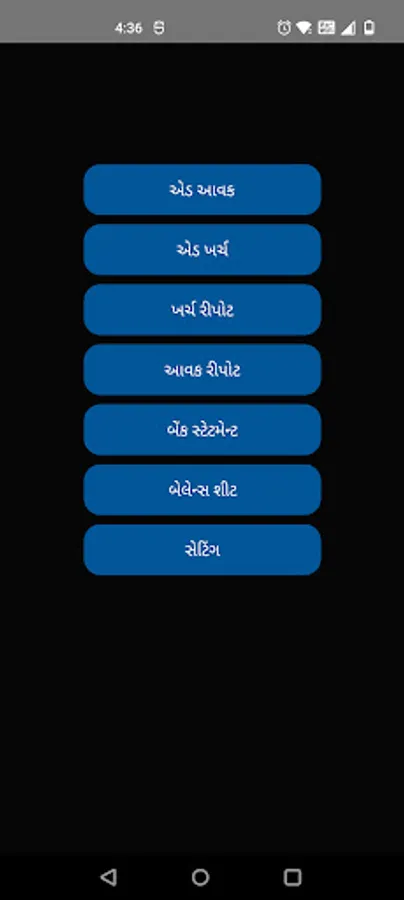 Home Screen: Money manager app displays your current financial position of month or year wise on Home screen. You can change this setting from setting screen. Here, you can see last five transaction history of expenses and income (budget). You can direct add income and expenses from home screen. You can see various reports from menu icon.