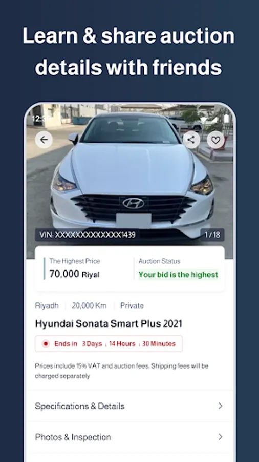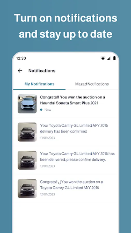 • Ability to activate notifications covering all stages of the auction to keep users well informed