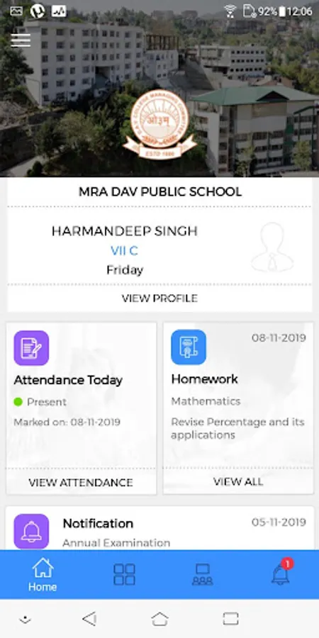 - Camera ( To allow clicking photographs of pages and attaching with the homework submission )