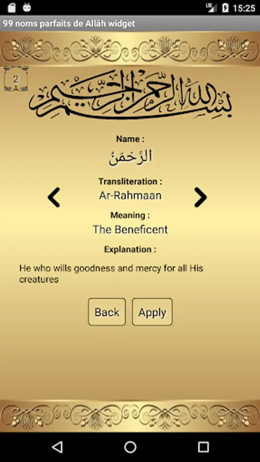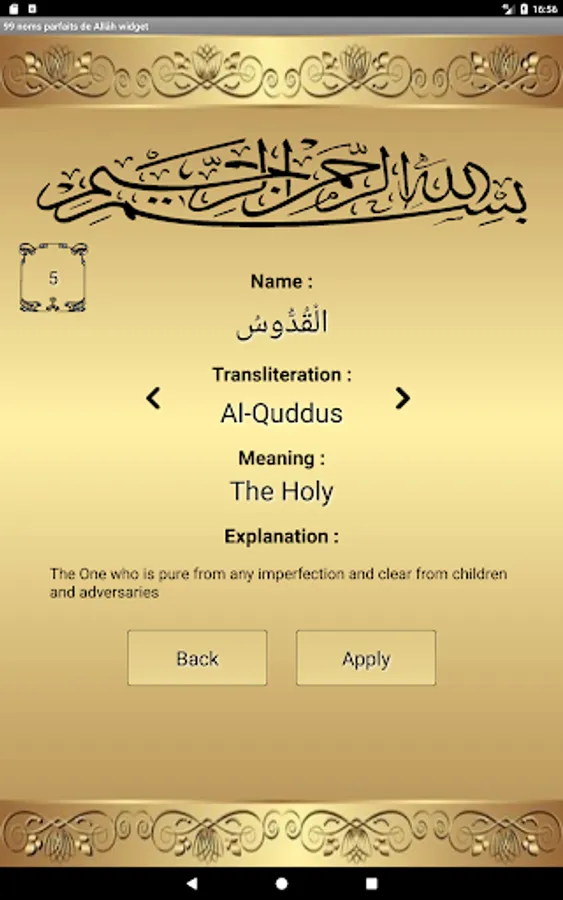 Learn through this application one of the 99 beautiful names of Allah each day.