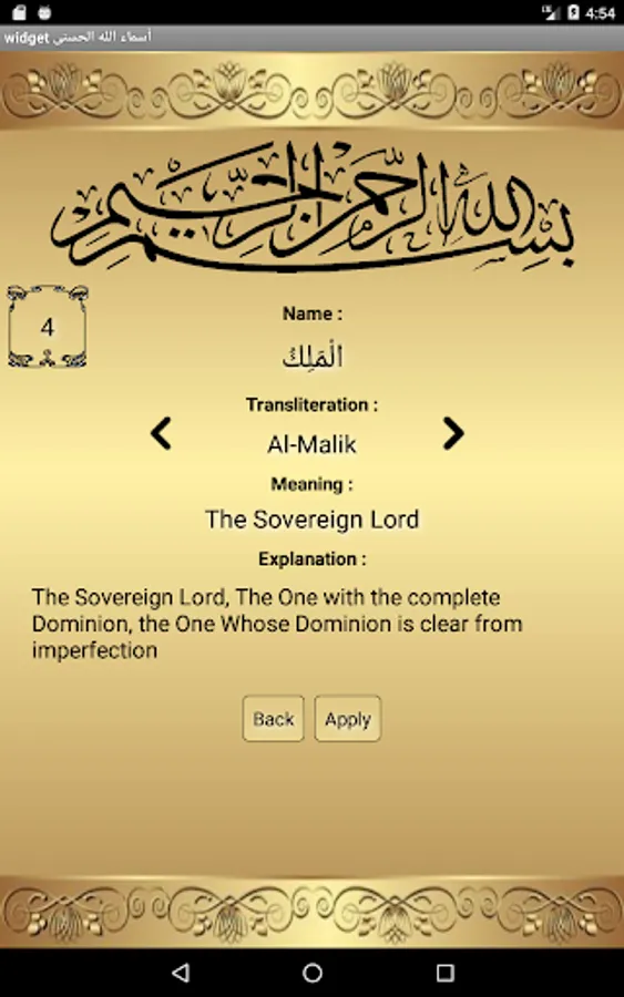 About widget 99 names of allah