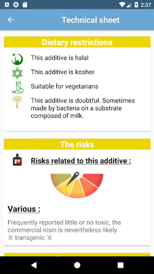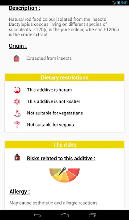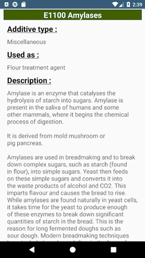 Good information about all of the food additives. I love this app. Helps me to make better choices when doing my shopping. Can be quite scary sometimes to find out what's added to some convenient food. Thank you developers