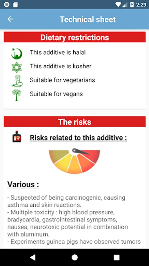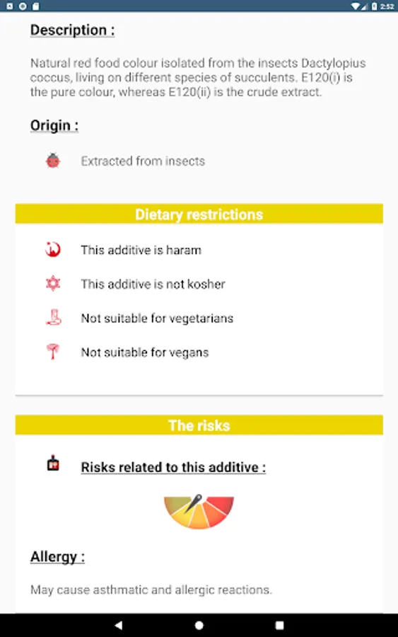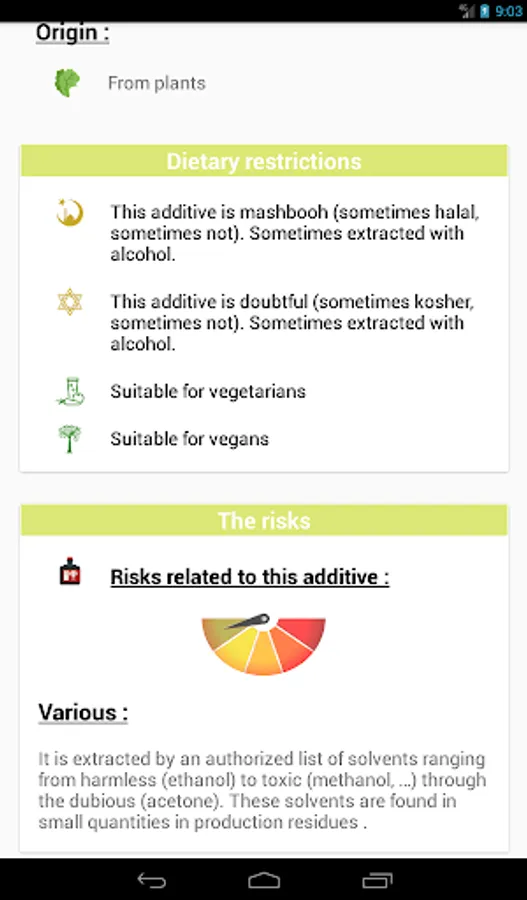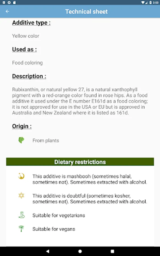 ✦ the status that lets you know if the additive is halal / kosher / vegetarian or vegan.